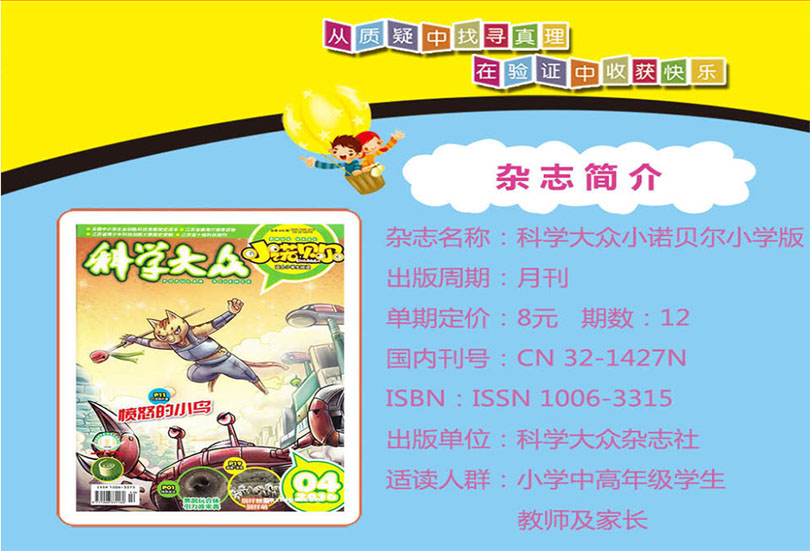 《科学大众·小诺贝尔小学版》主要栏目:探索•发现、才能逗秀场、科学动漫接力。